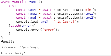 비동기 함수를 사용할 때 성공한 경우와 실패한 경우에 따라 코드를 작성해야 하는 경우가 많다. 이때 가독성이 매우 떨어지는 코드를 작성하게 된다. 예를 들어 다음과 같은 testLuck이라는 이름의 비동기 함수가..