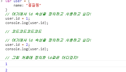user라는 객체에 key가 id이고 value가 1인 속성을 정의하고 이후에 의도하지 않게 다시 key가 id인 속성을 정의했다고 생각해보자. 이 경우 속성을 다시 정의했기 때문에 처음 정의한 value에 접근할 수 없다. 지금은 코드가 짧고 혼자 코드를 작성 중이기 때문에 이 실수를 알아채기 쉽지만 이 경우가 아니라면 어려울 것이다.