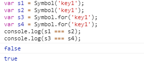 Static method의 대표적인 예는 Symbol.for(key)이다. for 메소드는 Symbol 타입의 값을 반환하는데 같은 key를 사용하여 생성한 값은 같은 값이 된다.